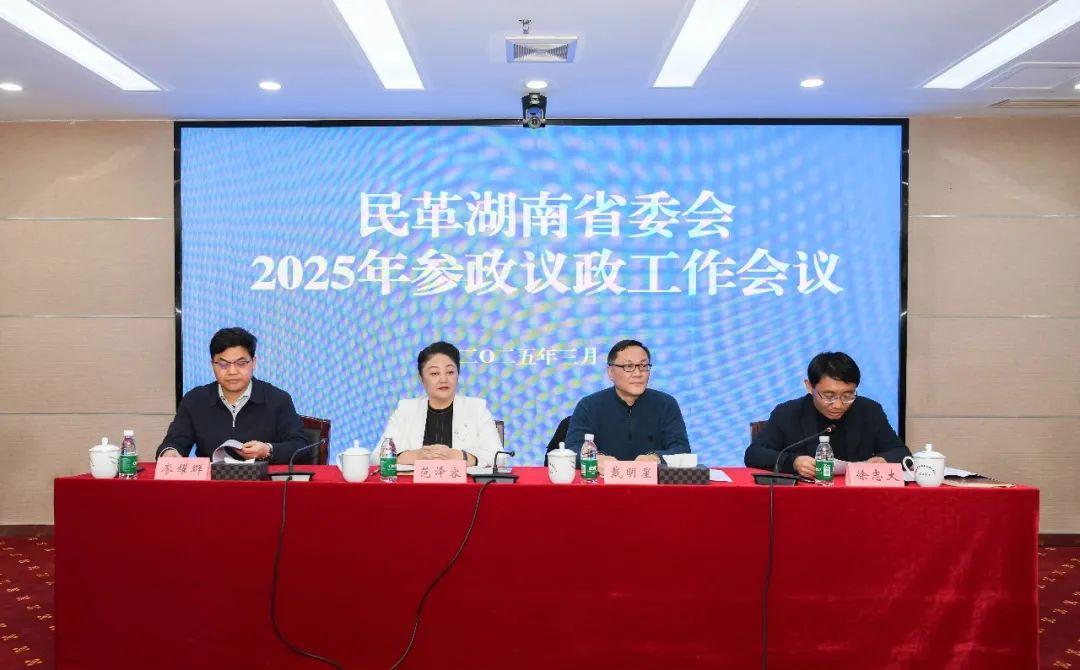 參政議政工作是民主黨派履行職能的第一要務。3月31日,民革湖南省委會召開2025年參政議政工作會議。會上宣讀了《關于公布民革湖南省委會2024年參政議政課題成果評審結果的通知》《民革省委會關于2024年度反映社情民意信息工作先進集體、先進個人的表揚通報》并進行了表彰。民革湖南省委會專職副主委范澤容出席會議。民革省委會秘書長戴明星,參政議政委員會委員班子成員,各市委會專職副主委、參政議政干部,2024年度參政議政課題代表、社情民意信息先進單位及先進個人代表等參加會議。